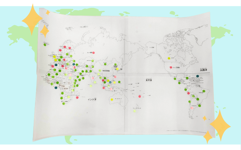 同じ地図でも、色の組み合わせや貼る場所によって、ひとりひとりの“自分色の世界地図”が完成しました。