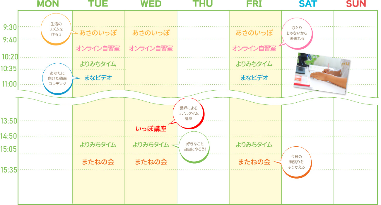 ■ オンライン自習室…開室日に毎回実施