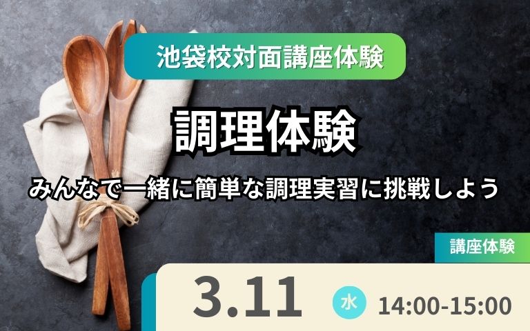 【池袋開催】3月11日(水)14:00-体験授業参加受付中 調理体験