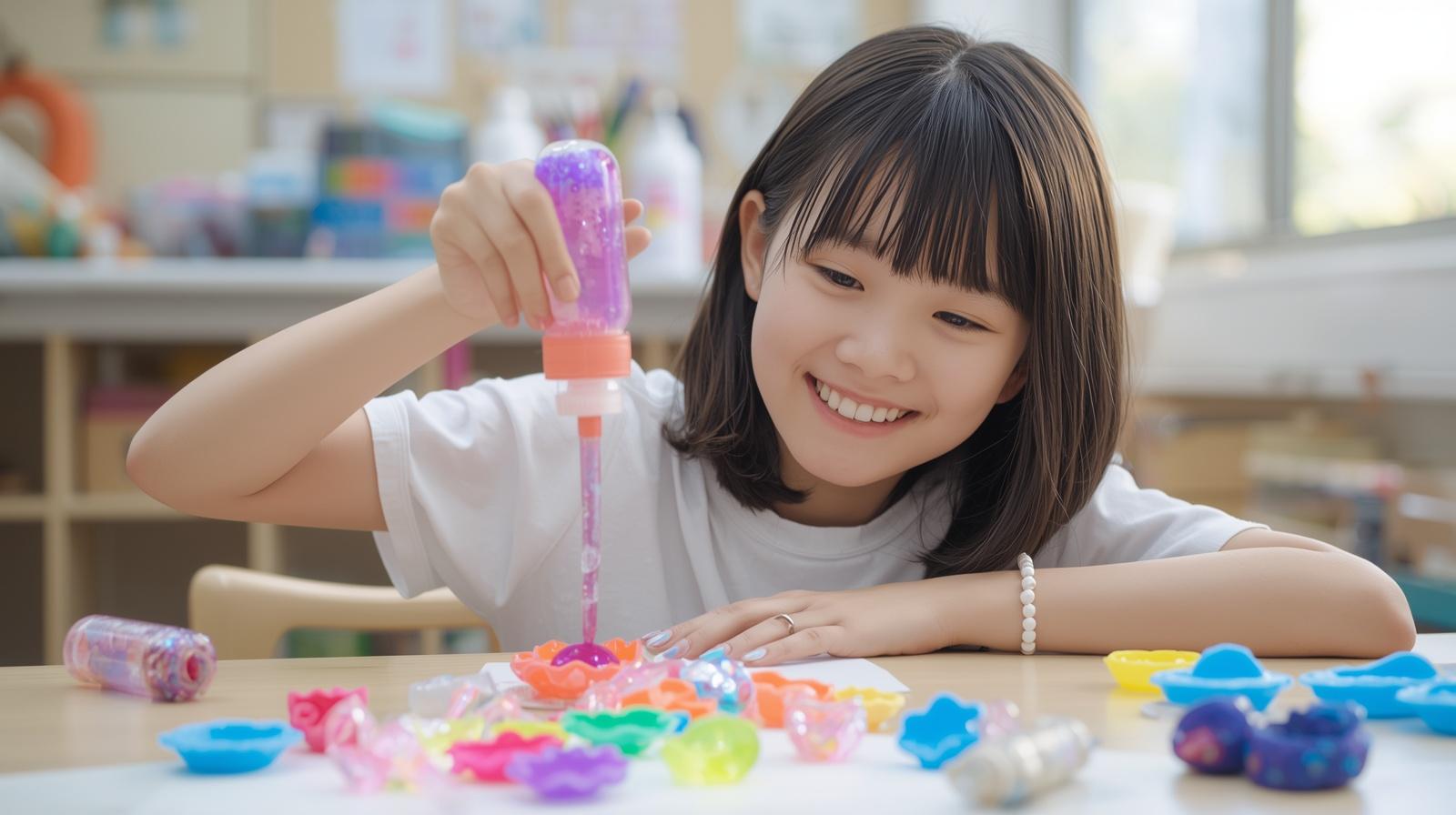 作品が完成したときには、「できた!」という達成感も生まれます。自分の手で作ったアクセサリーを手に取ると、「きれいにできた」「思った通りのデザインになった」といった喜びを感じることができます。こうした成功体験は、子どもたちの自信や自己肯定感にもつながっていきます。