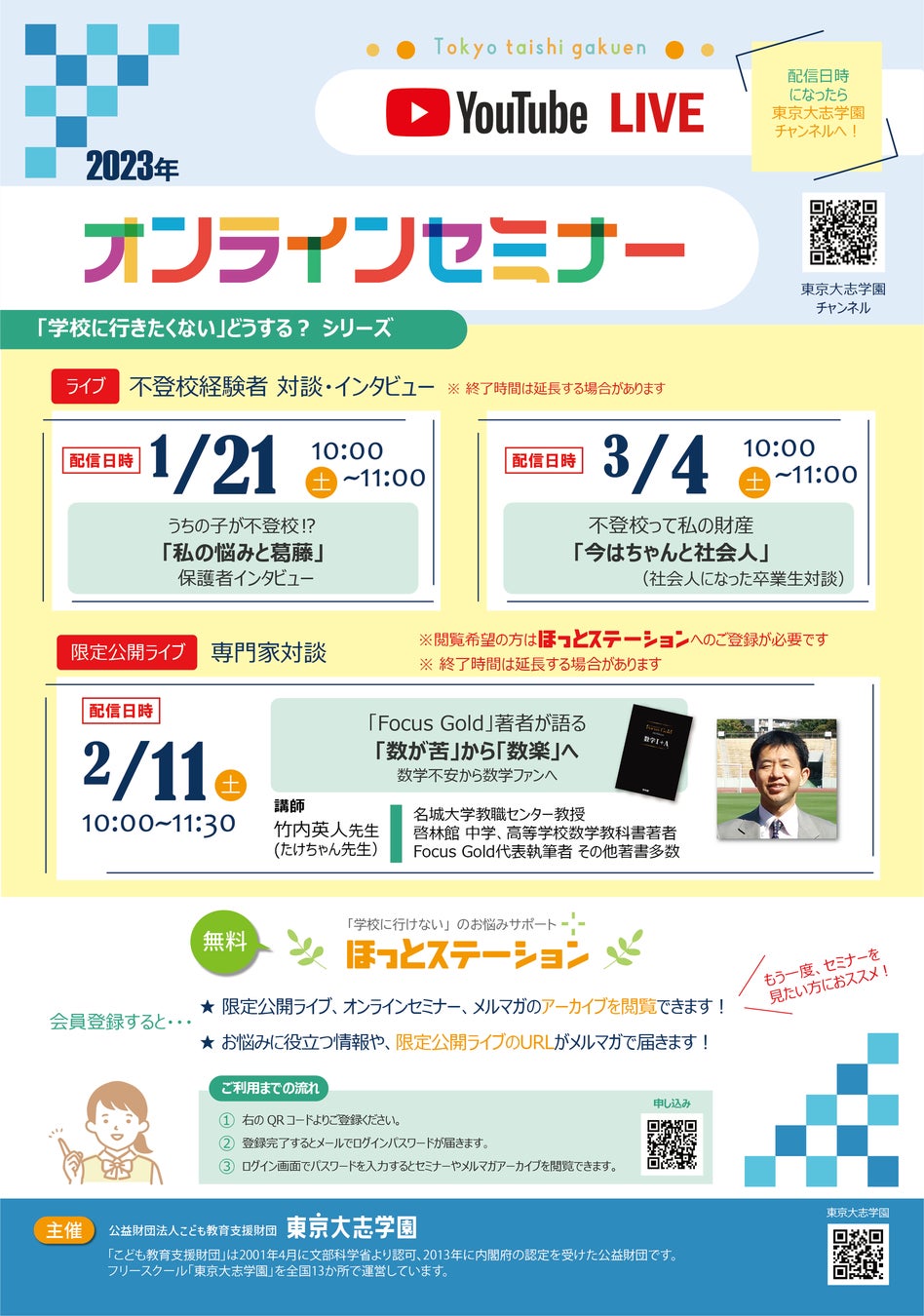 YouTubeライブ配信!不登校を経験した社会人や、不登校生の保護者、そして専門家の講演が無料で聞けます!!